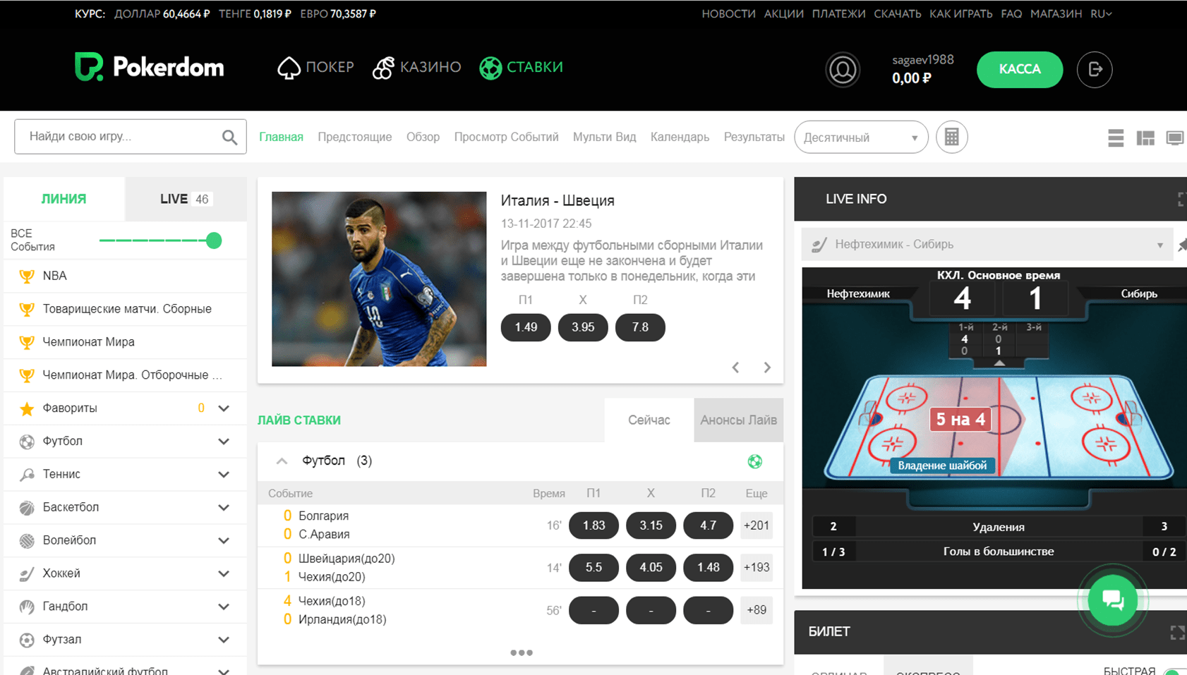 Линия событий и виды ставок в PokerDom