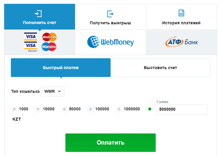 Для пополнения своего счета в ПокерДом КЗ через систему электронных расчетов WebMoney необходимо в кассе выбрать соответствующий способ оплаты, указать нужную валюту, сумму пополнения и нажать на кнопку «Оплатить».