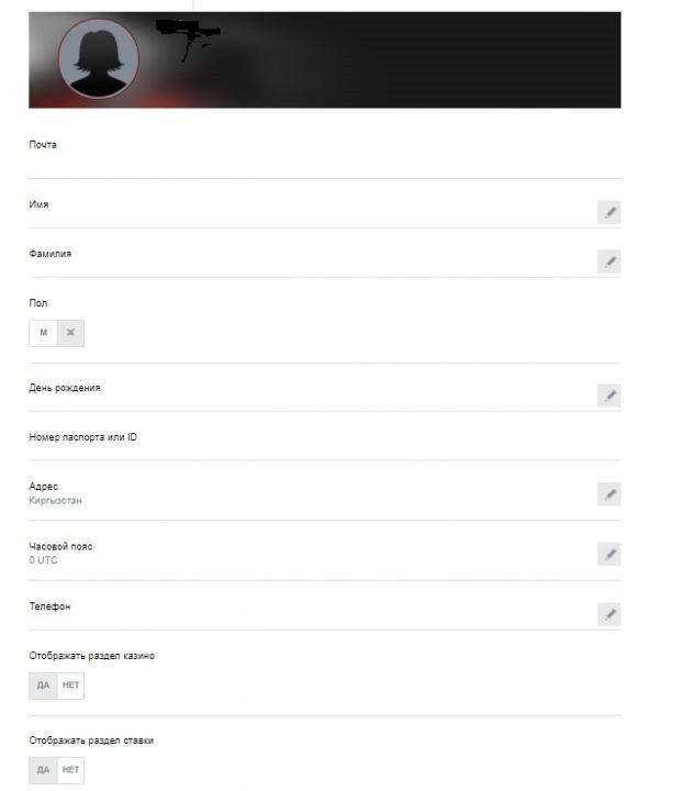 Обратите внимание, что в разделе «Мой профиль» можно изменить пароль, который вы ранее указывали при регистрации. Здесь же по своему желанию можно скрыть разделы «Казино» и «Ставки».